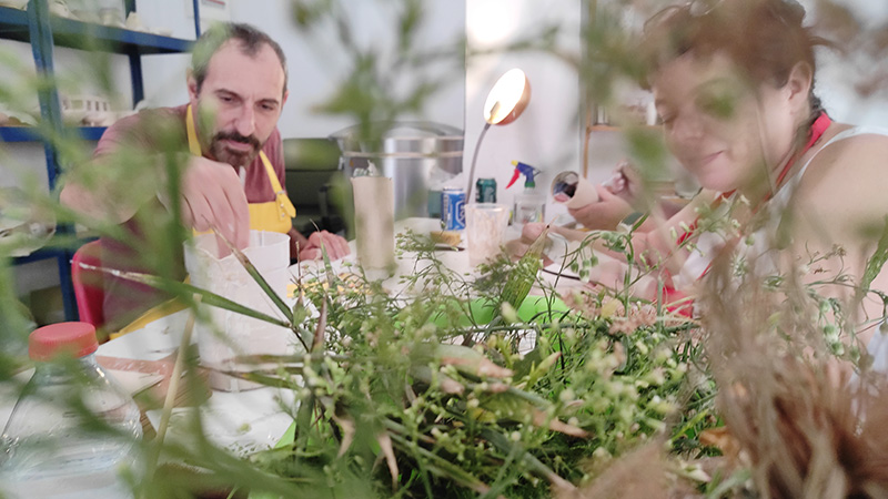 Alumnas del curso en pleno proceso creativo con la Porcelana de papel, Estudio Chaflán. Octubre 2022.
