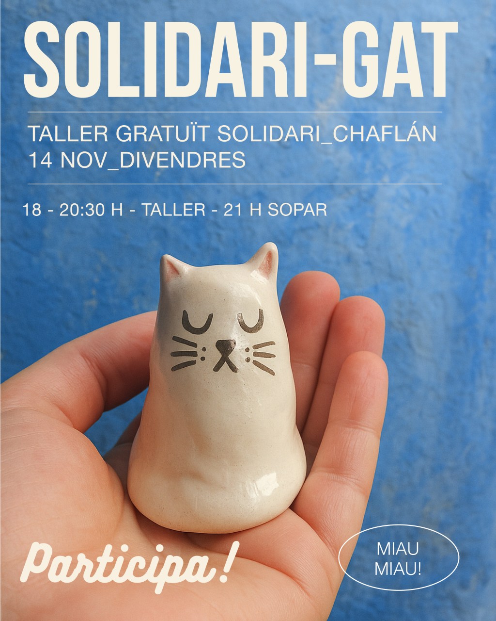 Et convidem a participar en Solidari-Gat, uns tallers creatius i comunitaris on farem figures de gatets de ceràmica inspirades en els gats del del carrer.