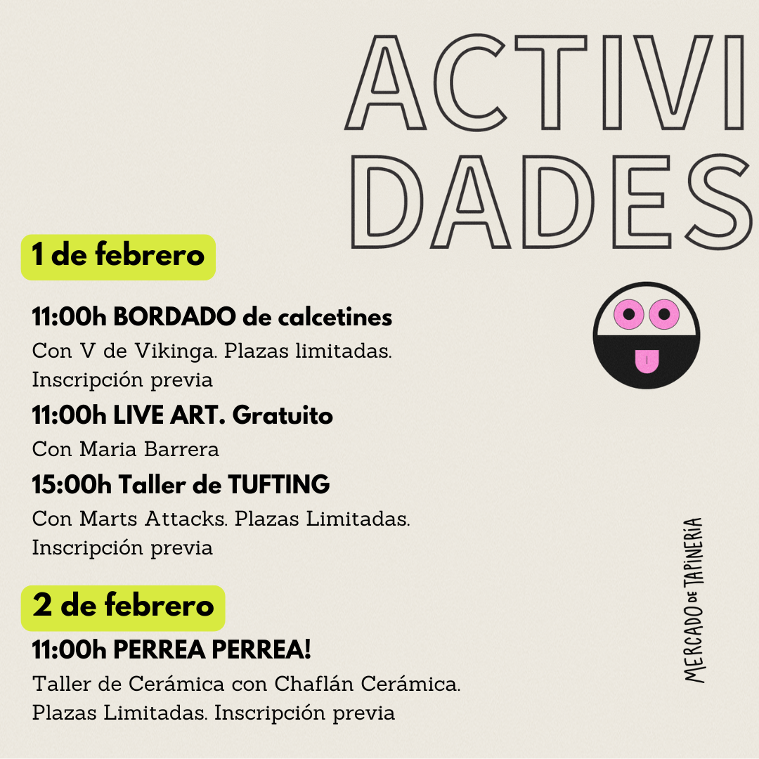 Cómo puedes ver hay programadas actividades muy chulas relacioadas con arte local y creatividad todo el finde en Mercado Tapineria.